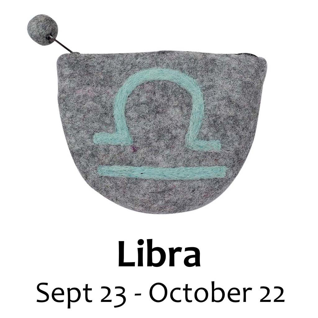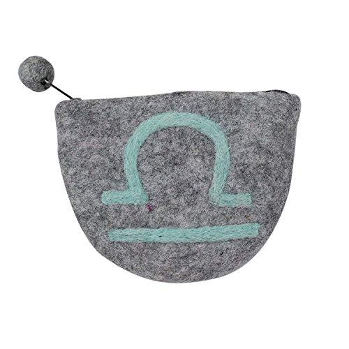 This lined felt coin purse with horoscope accent is 6.5 by 5 inches in size. Zipper closure with pom pom pull.