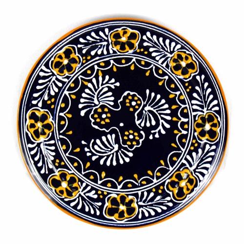 This traditional Mexican pottery is crafted and hand painted by artisans in Mexican using traditional pottery technique.  Each piece is highly textured and unique -- these pieces are gorgeous, yet very functional. This piece is a functional hot plate/trivet or a beautiful wall decoration (hole on the back for hanging).