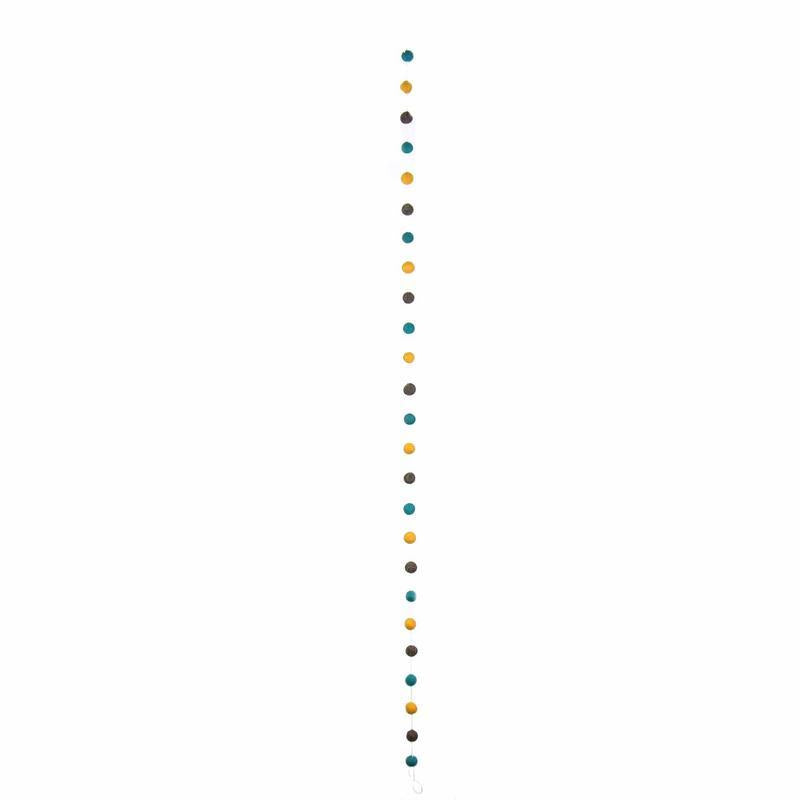 Hand Crafted Felt from Nepal: Pom Pom Garlands, Blue/Grey/Yellow