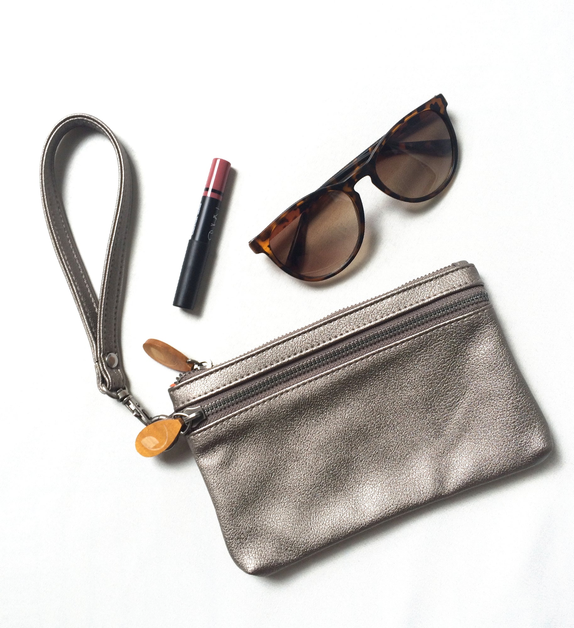 Vegan Leather Wrist Clutch — Grey